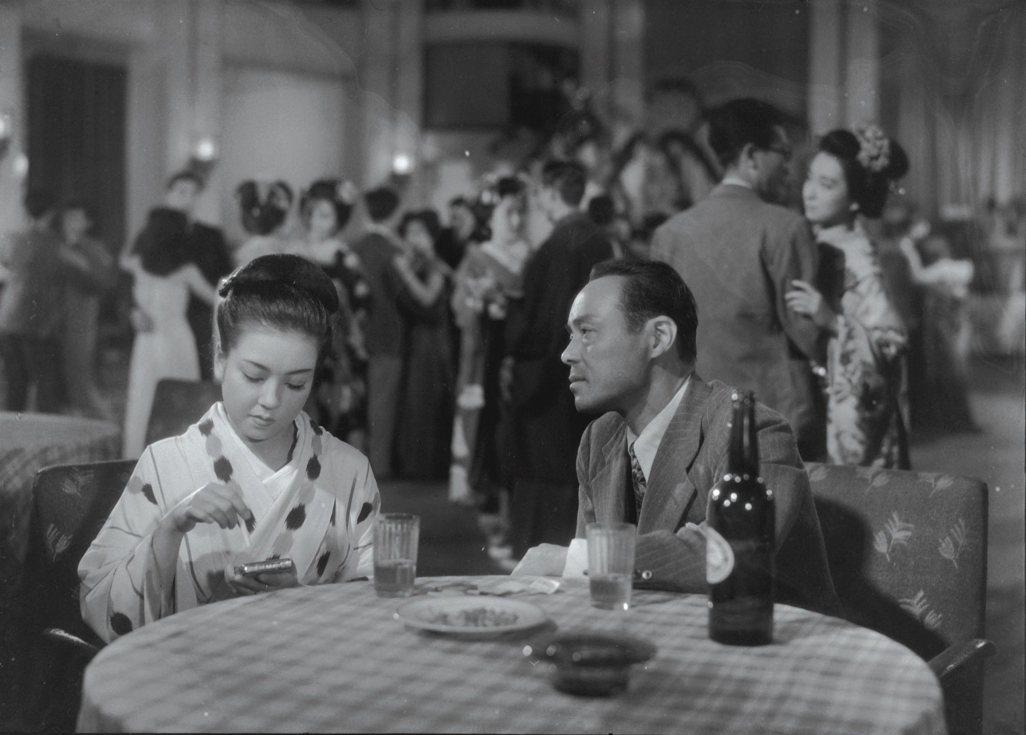 Taeko works for the Kyoto City tourism office. Her older sister Kimicho is a geisha who spends her time separating men from their money as a way to rebel against their geisha mother.