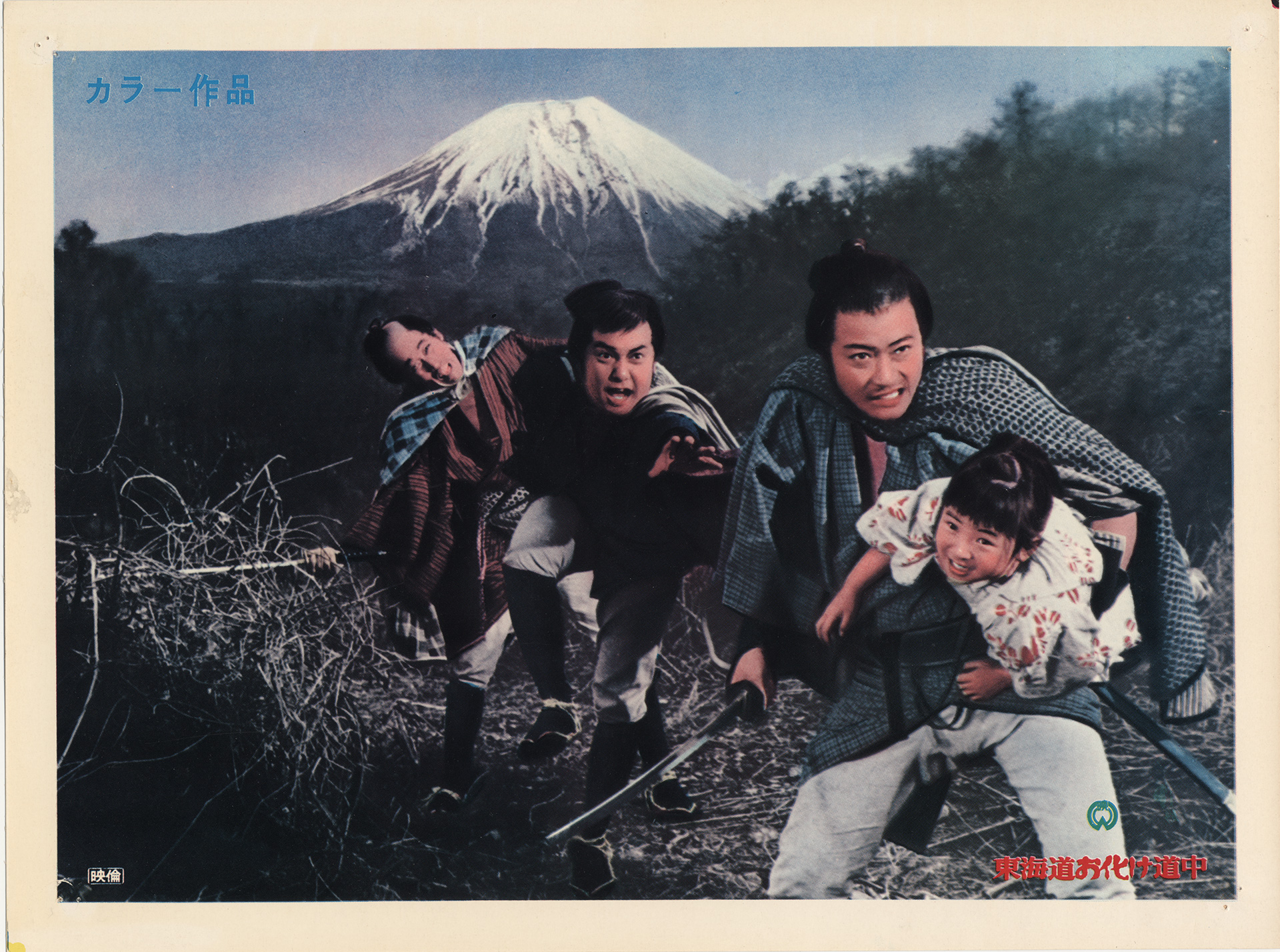 As Omiyo travels Tokai Road searching for her father, the yakuza Kanzo tries to kill her. When he attacks, she uses magic dice made from her deceased mother's bones to call up monsters and defeat the gangster.